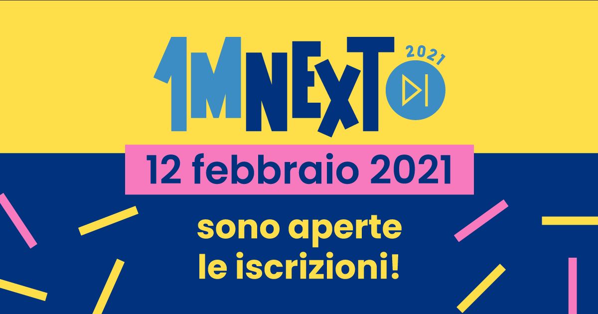 Le iscrizioni di 1MNEXT sono aperte a partire da venerdì 12 febbraio 2021, e verranno chiuse alla mezzanotte di domenica 21 marzo 2021.