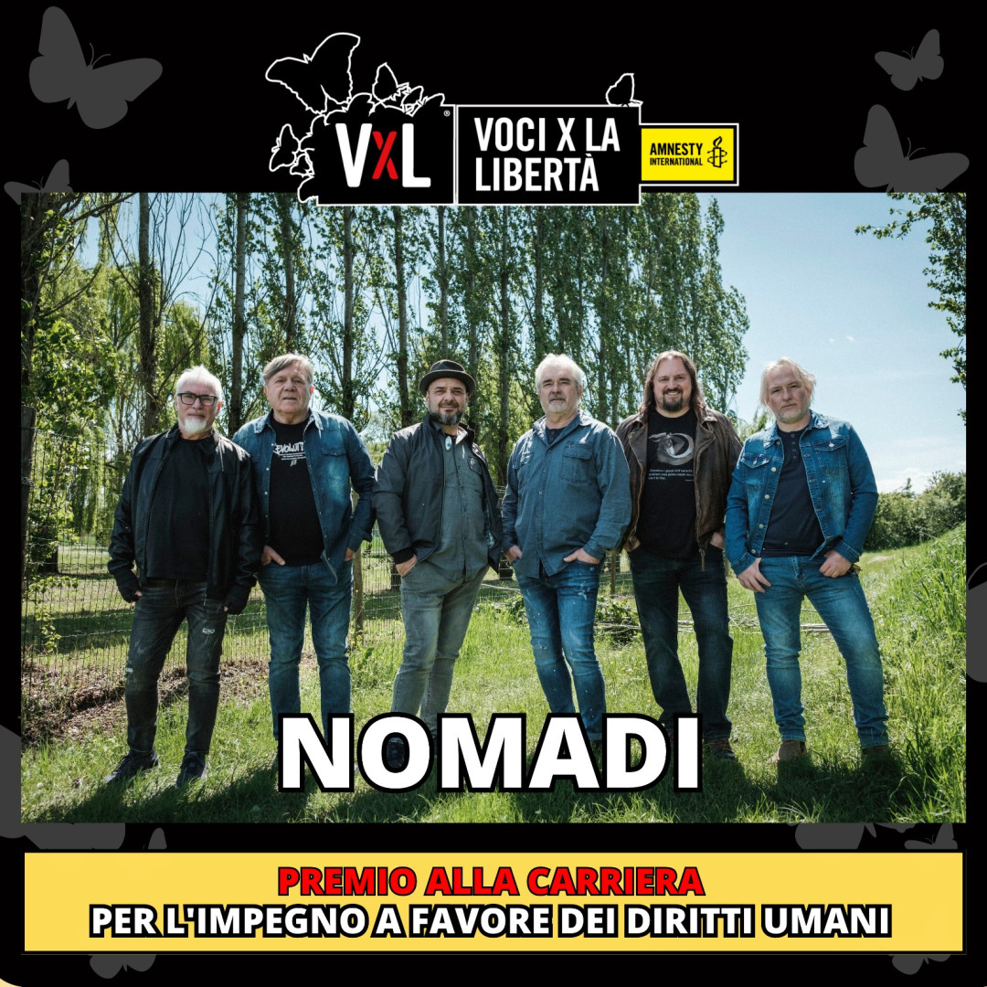 Voci per la libertà e Amnesty International Italia hanno deciso di assegnare il Premio alla carriera ai Nomadi per l’impegno in favore dei diritti umani. Questo riconoscimento arriva in concomitanza con la celebrazione dei 60 anni della band e con il 75° anniversario della Dichiarazione universale dei diritti umani.