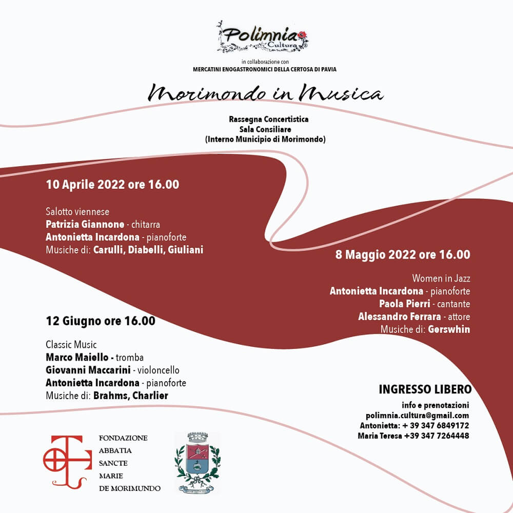 I concerti si terranno nella Sala Consiliare, che si trova all’interno del Municipio di Morimondo (Mi). L’ingresso è libero.