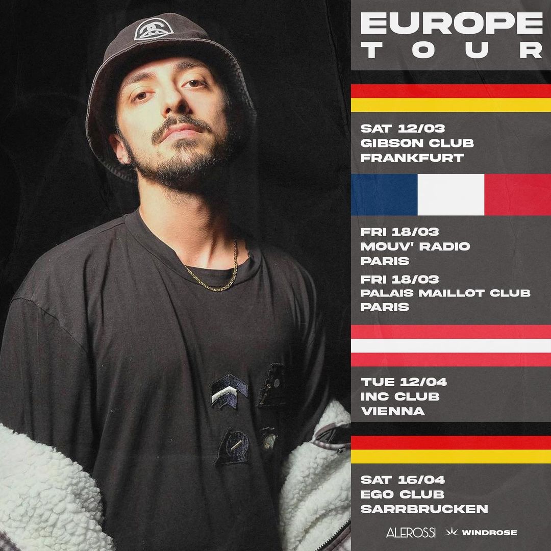 Dopo aver proposto i suoi dj set alla community mondiale DJ City, a Dilema Radio di New York, allo show NoCutzNoGlory di Wild1Radio e a Your Radio UK, DJ ALEROSSI è pronto a combinare musica urban e suoni elettronici nei maggiori club europei. Agli oltre 50 palchi italiani calcati, tra festival e locali, andranno quindi ad aggiungersi le nuove importanti performance live di questo tour primaverile, le cui prime date sono state annunciate sui profili social dell’artista.