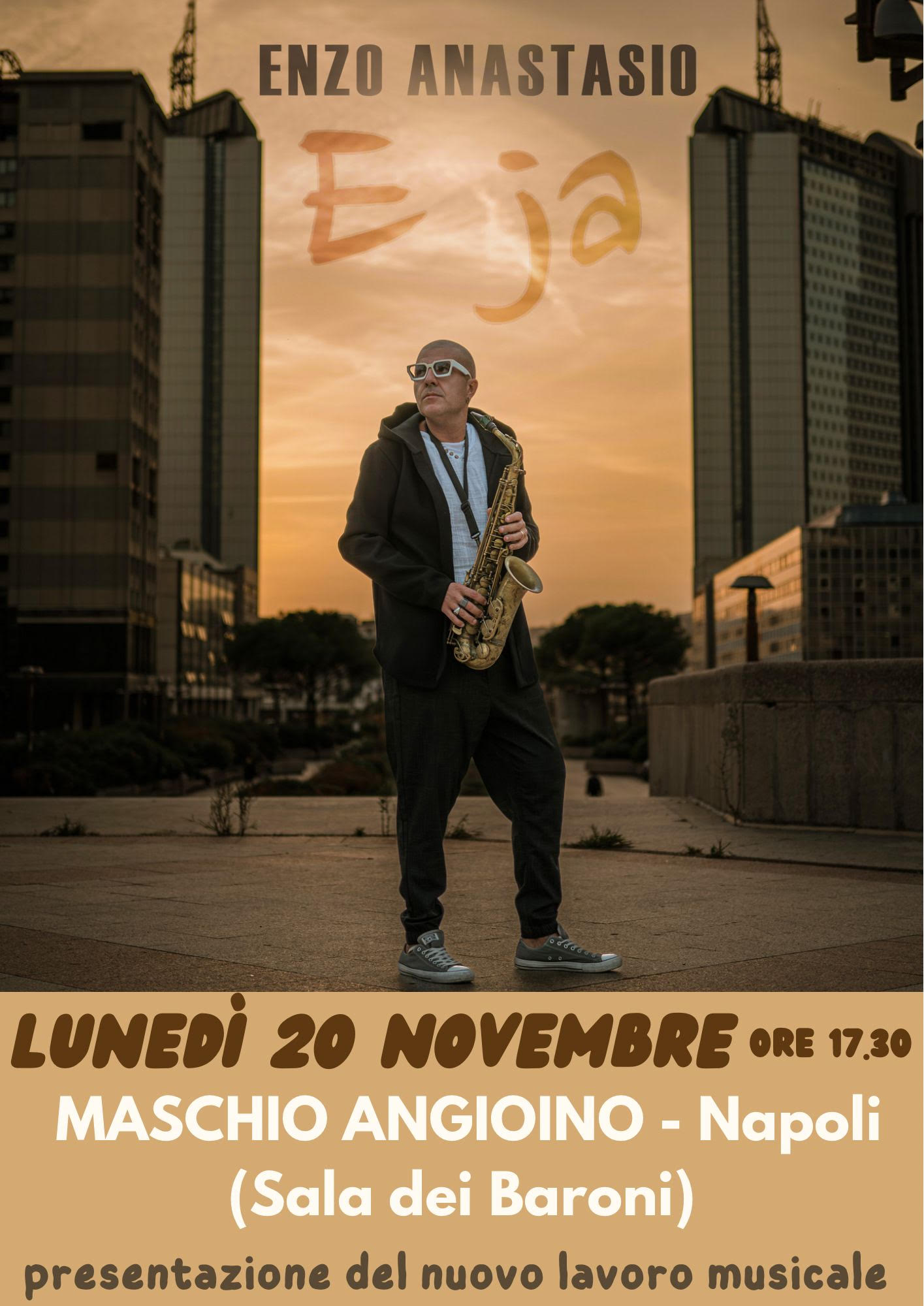 “E ja” è il nuovo singolo scritto, arrangiato e interpretato dal sassofonista napoletano, compositore e docente di musica, Enzo Anastasio. Laureato al Conservatorio con il massimo dei voti, prima nel genere classico e successivamente con laurea di II livello in jazz, partecipa a numerosi master con docenti e sassofonisti di fama internazionale. Collabora con artisti nazionali ed internazionali, tra cui MARRACASH, MARIO BIONDI, LUCA JURMAN, GEOFF WESTLEY, ANDREA SANNINO, SAL DA VINCI, SAGI REI, LUCIO DALLA, DAVID GARFIELD, GREGG BISSONETTE, JIMMY EARL, FRANK GAMBALE, ERIC MARIENTHAL, ADAM ROGERS, FABRIZIO BOSSO, MASSIMO MORICONI, CHERYL PORTER, TONY MOMRELLE, ALAN SORRENTI e molti altri. Enzo Anastasio ha all’attivo vari progetti discografici da solista, attualmente in distribuzione con etichette discografiche nazionali; tra questi, un disco uscito nel 2018 dal titolo “Through the sky” registrato a Los Angeles con grandi nomi del panorama musicale internazionale.