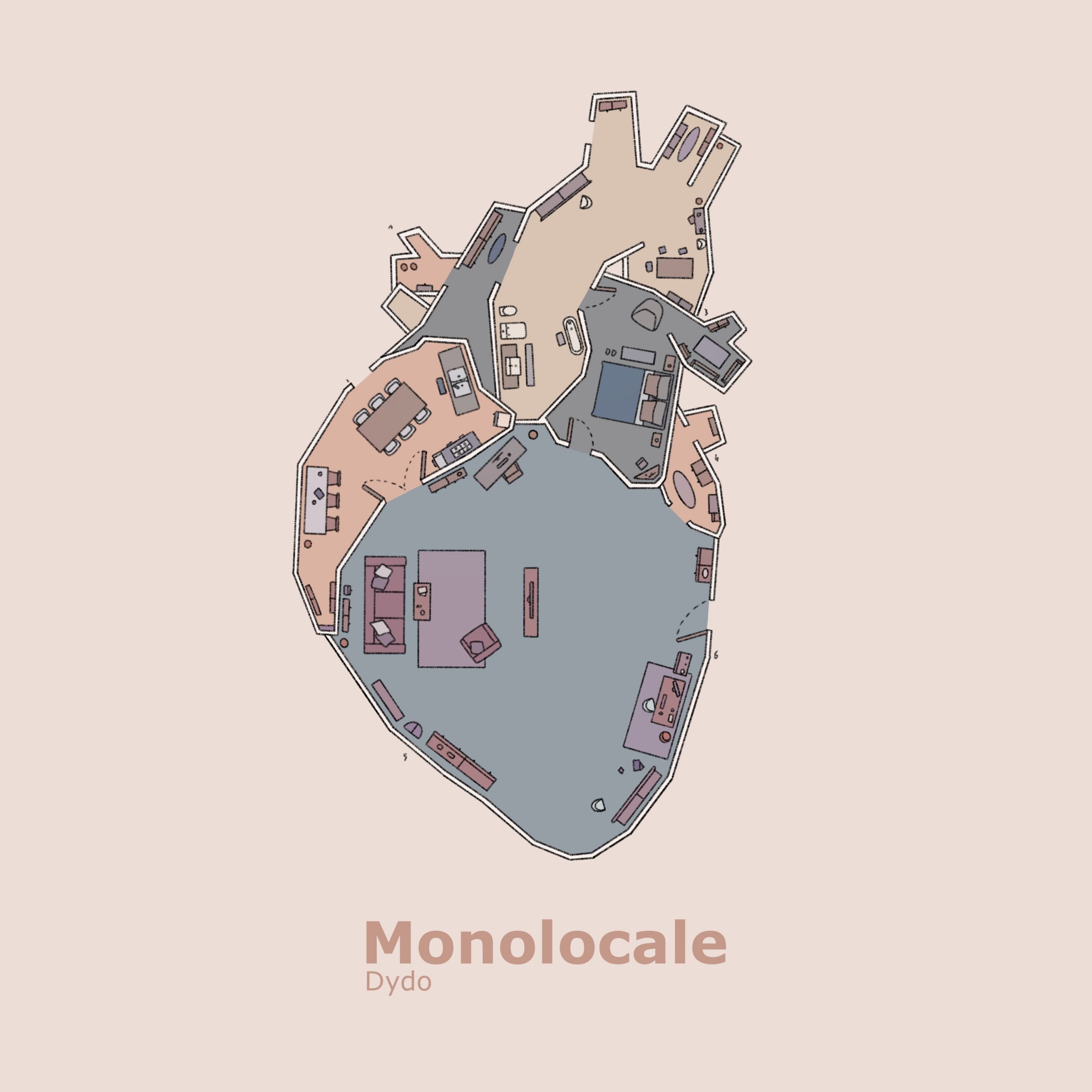 In “Monolocale” Dydo associa la figura del cuore ad un monolocale in cui abitare. La ricerca di una casa “dove poter stare bene con quello che ho”, diventa metafora della ricerca dell’anima gemella con cui vivere la vita serenamente e pienamente.