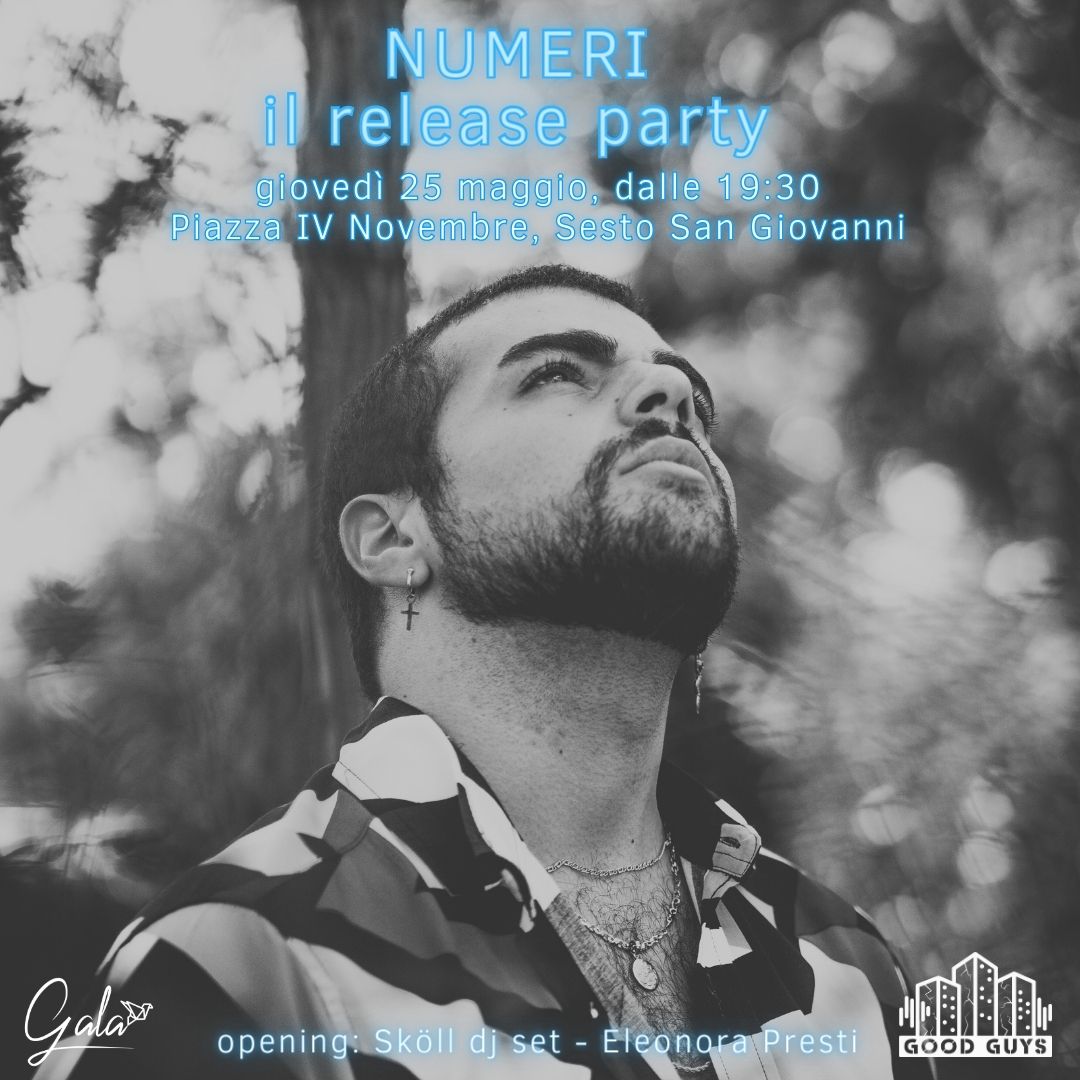 Il giovane cantautore Gala presenta il suo EP di debutto “Numeri”,fuori il 25 maggio, distribuito da Good Guys e La Crème Records tramite Ingrooves. Il release party dell’EP si terrà giovedì 25 maggio in piazza IV Novembre a Sesto San Giovanni, nel nuovissimo dehor del bar El Profesor, dalle 19:30.