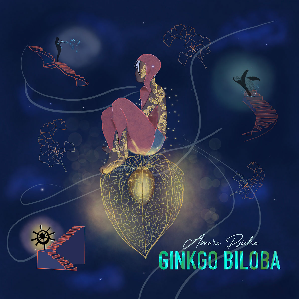“Ginkgo Biloba”, il secondo album di Amore Psiche, prodotto da Francesco Campanozzi, si snoda tra chitarre folk, ritmi sincopati e sonorità elettroniche che creano ambienti sotterranei. In questi spazi, la voce ricama parole feline e cariche di desiderio. Il disco pone una questione fondamentale: cosa resta se i nostri bisogni materialistici si ridimensionano e le nostre certezze svaniscono? Il mondo potrebbe trasformarsi, diventare diverso da come lo conosciamo; potremmo dedicarci molto di più alle carezze, prenderci cura del patrimonio artistico e vivere in sintonia con la natura, adottando un approccio meno antropocentrico e considerando gli esseri umani come una parte del pianeta Terra, dove tutte le specie co-evolvono insieme. Il Ginkgo Biloba ci insegna che è possibile sopravvivere a molte intemperie. Questa pianta antichissima, di 250 milioni di anni, ha superato grandi catastrofi grazie alla sua elevata resistenza alla siccità, al freddo e all’inquinamento; per questo l’album si intitola con il suo nome.