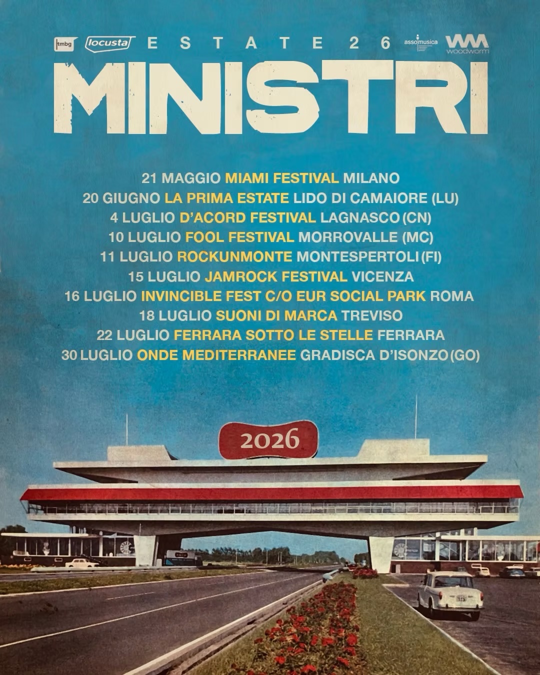 Dopo il grande successo del Provincia Popolare Tour, I Ministri annunciano le date per il tour per l’ESTATE 2026: una nuova serie di date che accompagnerà il pubblico nei mesi estivi, portando l’energia del disco sui palchi all’aperto e nei festival lungo tutta la penisola.