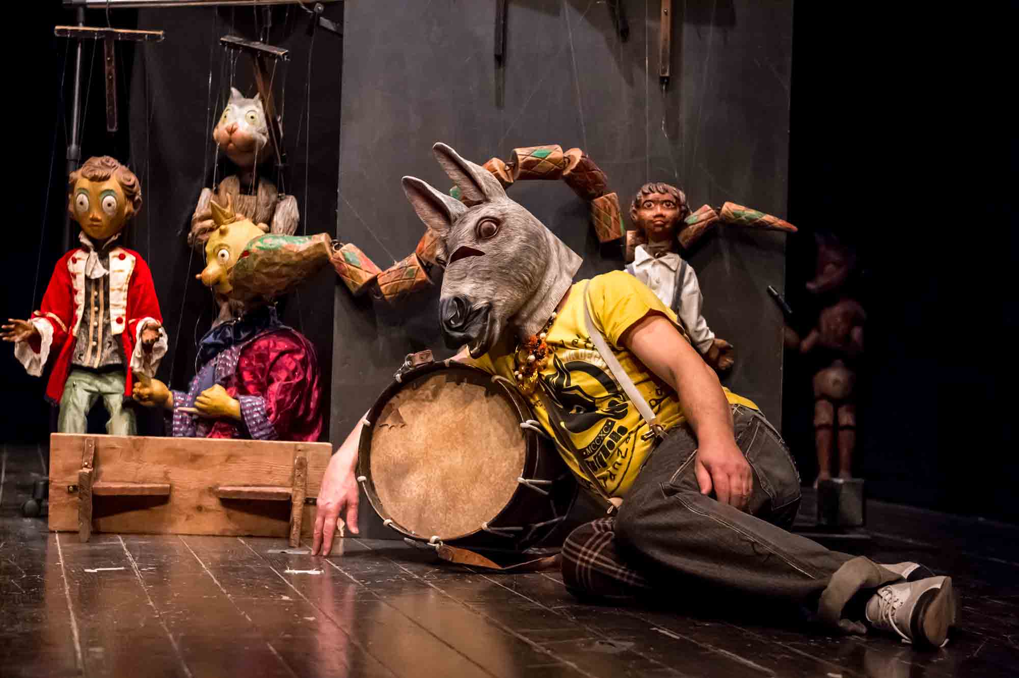 Il “coro degli ignoranti”, come un moderno coro di baccanti, accompagnato da un vorticoso e mantrico ritmo di tamburi e grancasse, suoni di fisarmoniche, fiati e versi animali, continua a ripetere “aeiou ciuccio bestia che sei tu” come nelle filastrocche del gioco che si faceva a scuola da bambini quando si voleva prendere in giro il ciucciarello della classe…