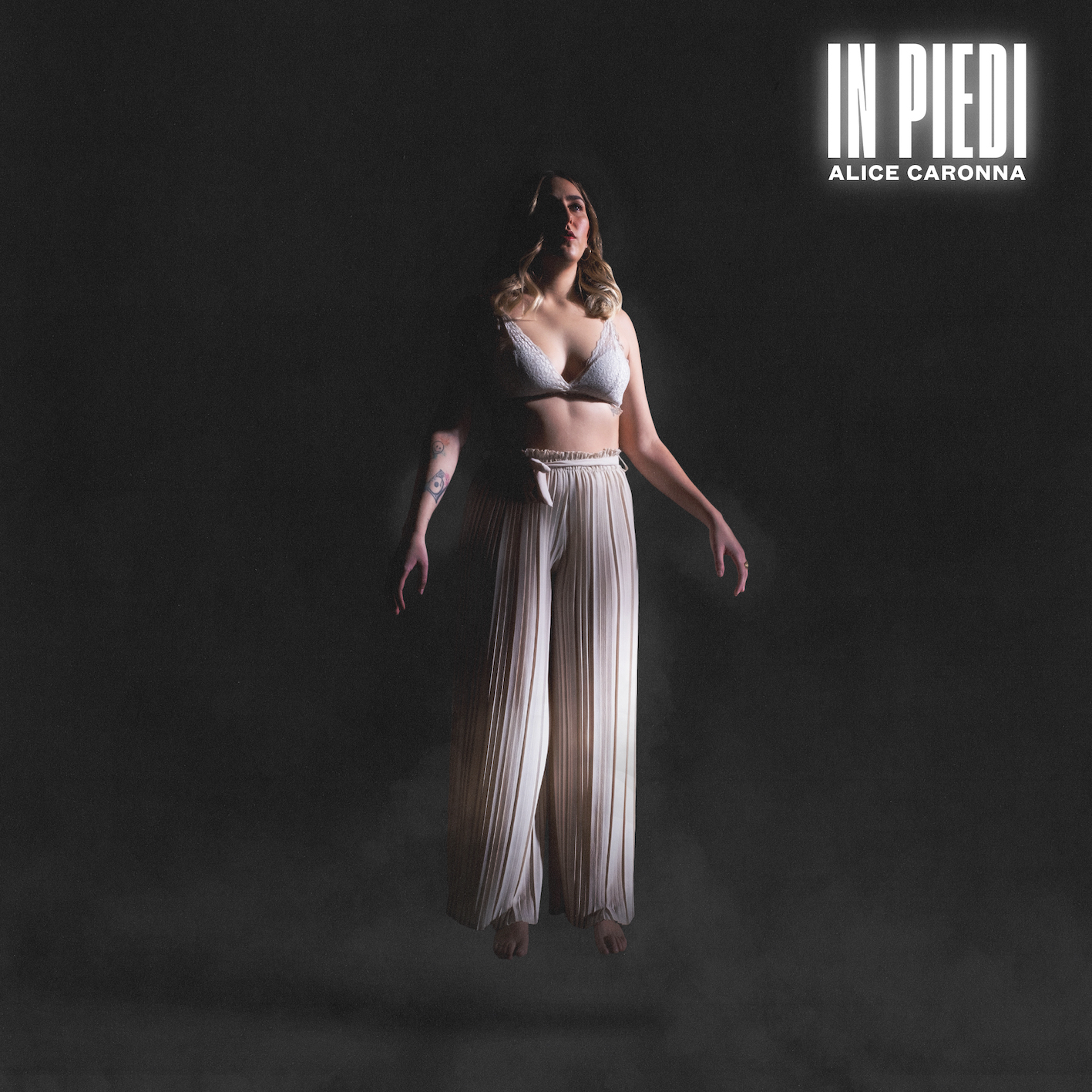 “In piedi” è il nuovo album della cantautrice Alice Caronna, il secondo dopo “Alba” e il primo per Pioggia Rossa Dischi/BOC Music Group di Genova. Anticipato dai singoli “Le Bonheur”, “2” e “Ciao Cara”, “In piedi” è un disco sincero, diretto e consapevole: Alice si mette a nudo e racconta le sue paure più profonde, quelle nei confronti della vita, delle persone, dell’amore e di se stessa.