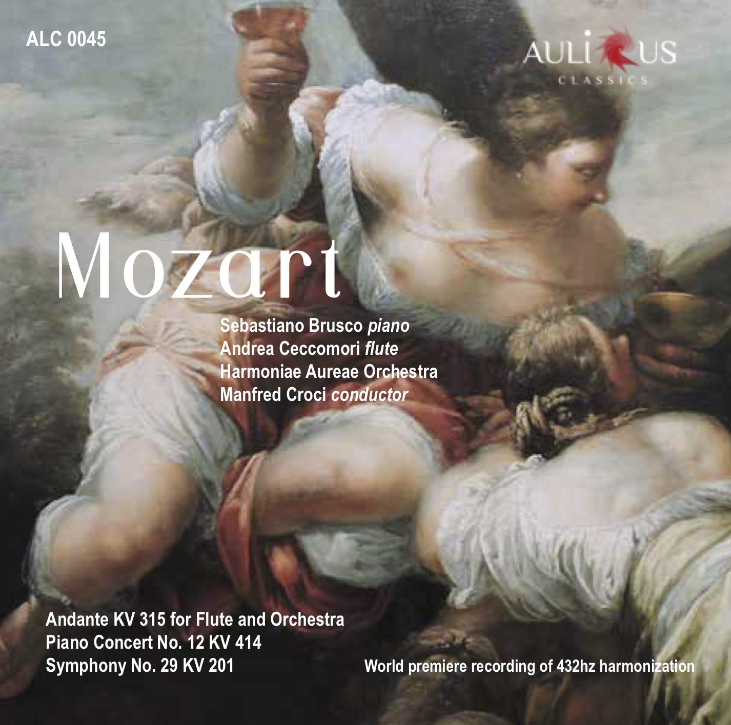 Esce per l’etichetta Aulicus Classics Mozart, un CD dedicato ad alcune fra le più belle pagine del repertorio Mozartiano registrato a 432 Hertz: l’Andante in Do maggiore per flauto e orchestra KV 315, il Concerto nr. 12 per pianoforte KV 414 e la Sinfonia in La Maggiore KV 201. Il progetto, realizzato in occasione di un concerto presso la chiesa della Nostra Signora del Sacro cuore il 6 Gennaio 2020, vede protagonisti del concerto Sebastiano Brusco al piano e Andrea Ceccomori al flauto accompagnati dall’orchestra Harmoniae Aureae per la direzione di Manfred Croci. A rendere speciale questa registrazione è l’utilizzo dell’accordatura aurea, nella quale il “la” è accordato a 432 Hertz e si rifà, quindi, alla proporzione aurea, generando una frequenza armonica ed avvolgente, in grado di restituire un suono più naturale e ricco di sfumature, capace di immergere completamente l’uditorio nella musica. L’album sarà disponibile presso tutti i principali stores online e piattaforme digitali.