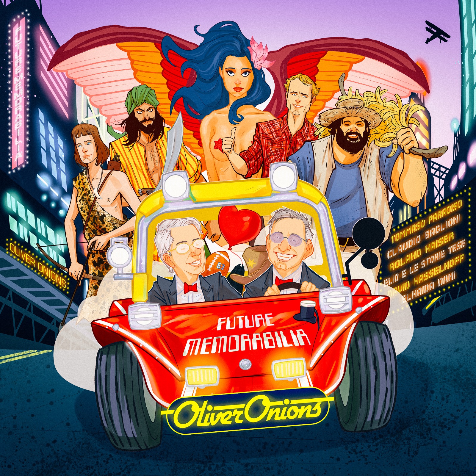 Nella grande macchina di Guido e Maurizio De Angelis, protagonista della cover cartoon affidata al fumettista e illustratore Denis Medri e svelata sul finale del videoclip di “DUNE BUGGY (FROM THE FUTURE)”, le collaborazioni cross-genere spingono l’acceleratore indicandoci la direzione di “FUTURE MEMORABILIA”. Così il duo svela oggi i featuring speciali che impreziosiscono la tracklist, oltre alla già nota Banana Joe feat. Bud Spencer.