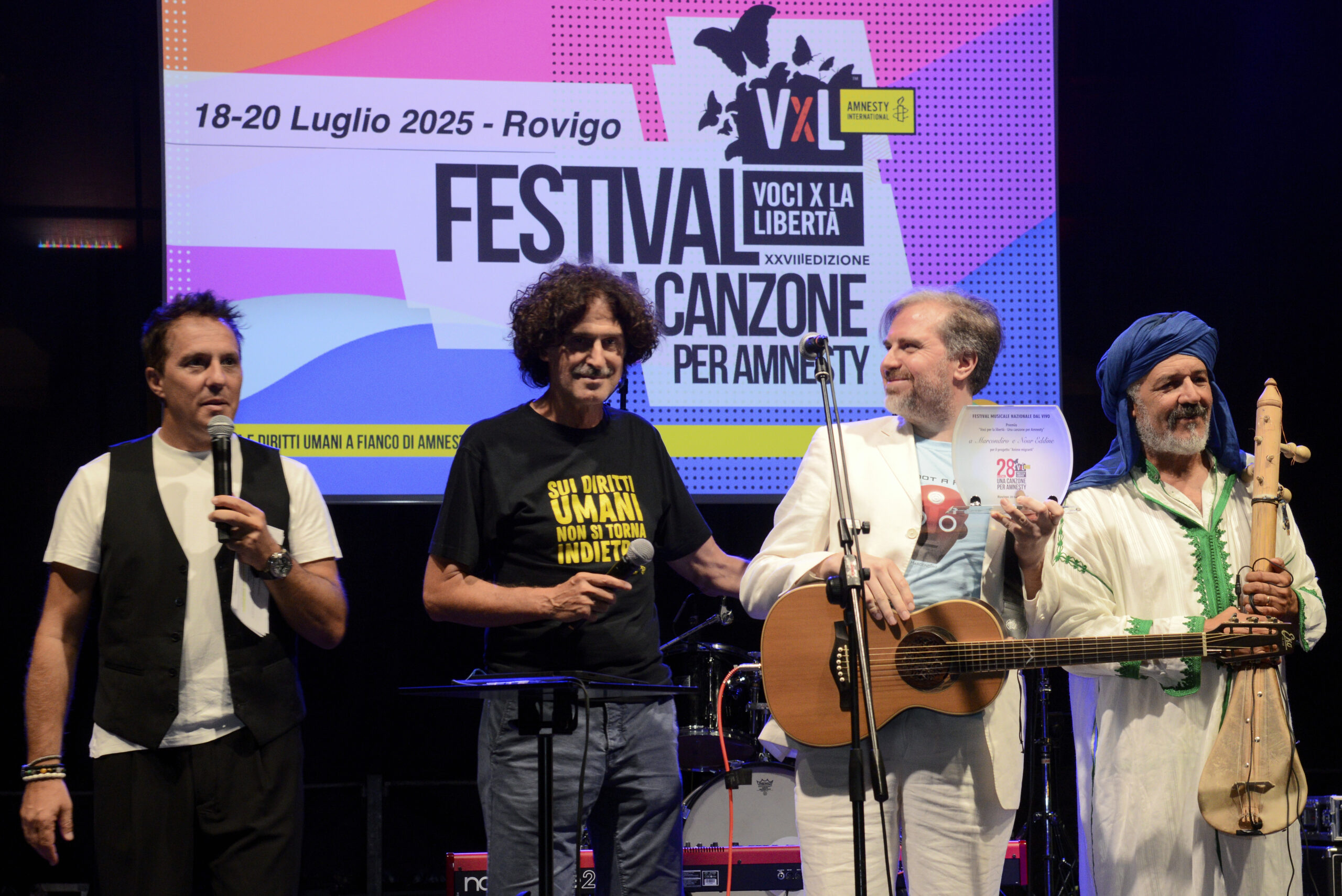 Il Premio “Voci per la libertà – Una canzone per Amnesty” è stato conferito a MARCONDIRO e NOUR EDDINE per il loro brano “Exil Anima Migrante”, scritto a quattro mani e prodotto da Marco Marchese Borrelli per PARODOI Dischi. La canzone si inserisce nel progetto del PRIMITIVE ROBOT TOUR, un circuito di concerti che vedrà i due artisti esibirsi in importanti occasioni, tra cui la Festa del Trono all’Ambasciata del Marocco in Italia il 30 luglio a Roma, il concerto a Tropea il 13 agosto per il Comitato della Dante Alighieri, e l’evento al Consolato italiano in Marocco il 3 ottobre, organizzato con la Dante Alighieri di Casablanca.