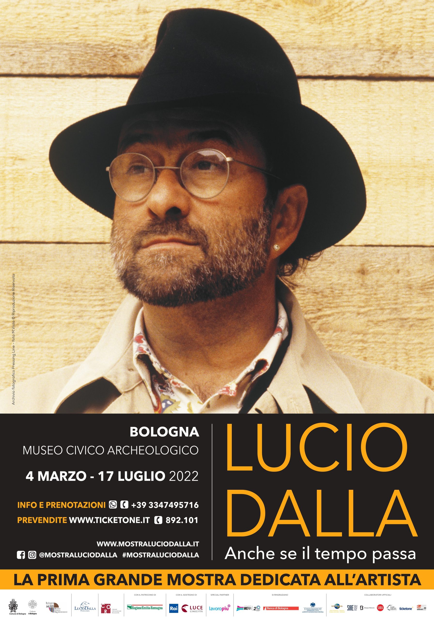 La mostra sarà ospitata nella prestigiosa cornice del Museo Civico Archeologico, a partire dal 4 marzo e fino al 17 luglio. Promossa dal Comune di Bologna con il patrocinio della Regione Emilia-Romagna, è ideata e organizzata dalla società C.O.R. Creare Organizzare Realizzare di Roma. La curatela è di Alessandro Nicosia con la Fondazione Lucio Dalla, ed è il frutto di una lunga ricerca di materiali, molti dei quali esposti per la prima volta, che documentano l’intero percorso umano e artistico di uno dei più amati artisti italiani e internazionali che ha lasciato un segno indelebile nella storia della musica, dello spettacolo e della cultura.