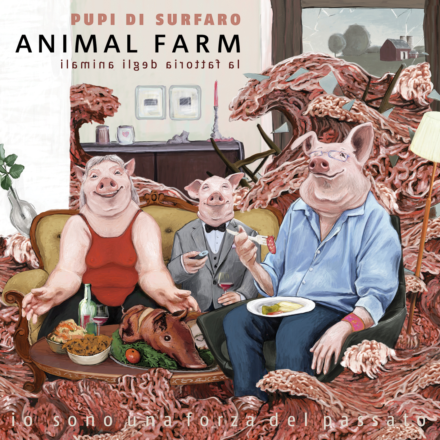 “Animal Farm” arriva dopo cinque anni dal fortunato “Nemo Profeta”, il disco che ha aperto la strada al Nu Kombat Folk. È un album concettuale, ispirato alla letteratura distopica del 900 europeo ed è dedicato al genio di Pier Paolo Pasolini, nell’anno del 100° anniversario della sua nascita. Come nel romanzo omonimo di George Orwell, la figura del maiale, l’animale geneticamente più vicino all’uomo, attraverso una lunga serie di ribellioni e rivoluzioni, conquiste politiche, sociali ed evolutive, piccole e grandi, riesce ad emanciparsi dalla sua condizione di bestia sottomessa, soggiogata e schiava del potere. Ispirato da principi di uguaglianza e solidarietà, finisce poi per tradire i suoi fedeli compagni e la sua stessa causa.