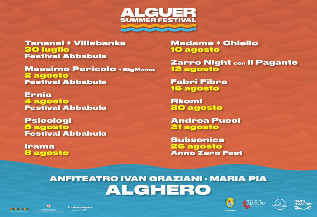 Da fine luglio, il rinnovato Anfiteatro Maria Pia, noto anche come Anfiteatro Ivan Graziani, a due passi da un mare cristallino e spiagge incantevoli, torna a riempirsi di emozioni e di musica. Irama, Madame, Fabri Fibra, Rkomi, Andrea Pucci, oltre a Subsonica e agli artisti ospiti della XXIV edizione del Festival Abbabula, quest’anno si danno appuntamento ad Alghero nel mese più caldo della stagione estiva.