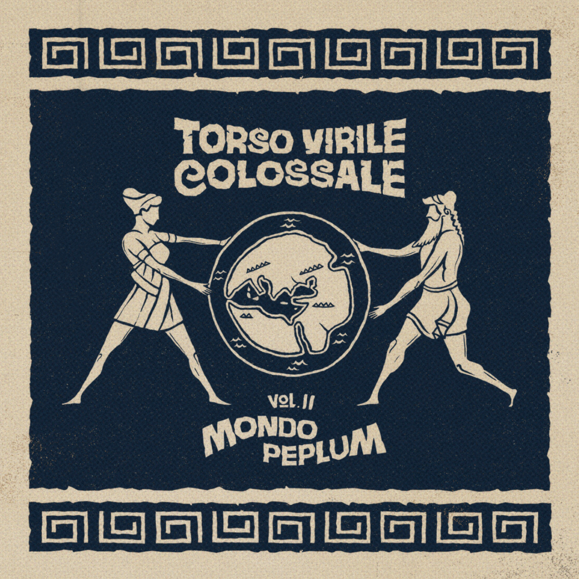 Questa volta la Storia Antica e il Cinema Peplum offrono lo spunto per raccontare attraverso 12 nuovi brani i luoghi e le ambientazioni di storie legate al passato. I brani di ‘Vol 2 – Mondo Peplum’ evocano infatti una sorta di mappa del mondo antico, un vero e propio Ecumene, come quello riprodotto nella copertina dell’album: una rappresentazione del Globo terraqueo con un piede nel Cinema e l’altro nella Storia. Ecco quindi che tra i brani dell’album fanno capolino le antiche megalopoli, gli eserciti del passato, nordafricani e orientali, l’Impero Romano nella sua massima estensione e le sue prigioni nel cuore dell’Urbe. Il nuovo album di Torso Virile Colossale omaggia anche le location ‘reali’ dove questi film sono stati realizzati ovvero i set cinematografici ma anche i set ‘en plain air’, come le famose cascate sul fiume Treja o Tor Caldara. A completare il quadro storico-geografico ci sono due brani dedicati agli Etruschi e ai Fenici.