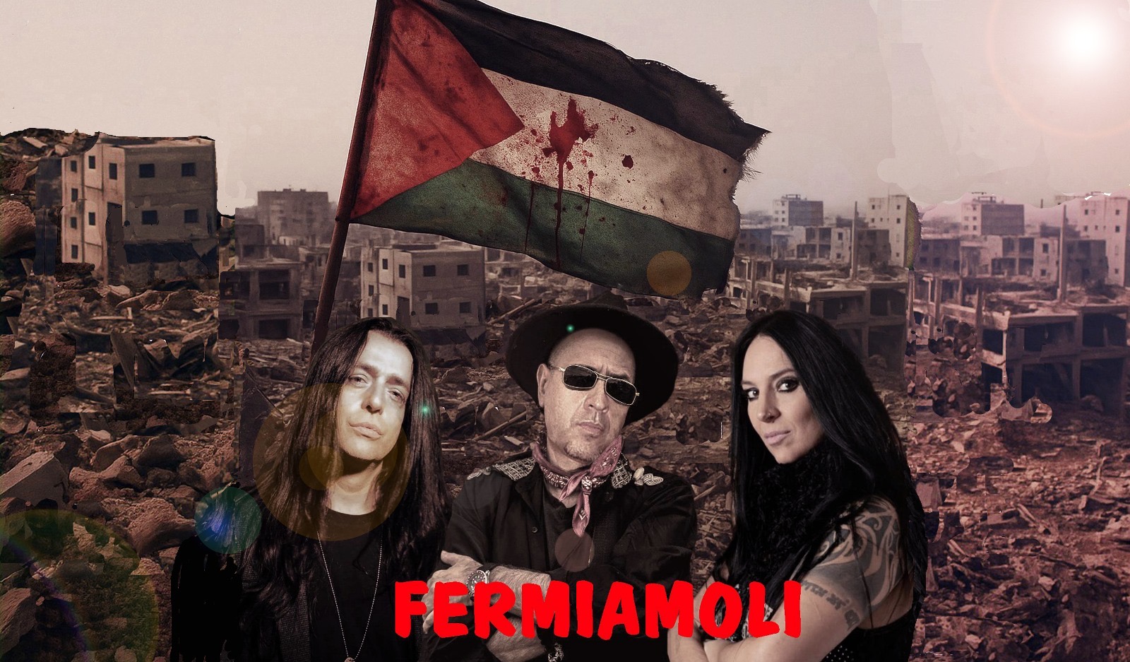 Si intitola “FERMIAMOLI” ed è più di una canzone: è un manifesto, una dichiarazione forte di solidarietà, di denuncia e di opposizione al genocidio in corso a Gaza. Un progetto dal forte messaggio antisionista e anti-NATO firmato da tre artisti che hanno da sempre preferito la coerenza e l’integrità rispetto all’ubbidienza e all’ipocrisia di un mondo musicale sempre più falso, pavido e allineato in cui, tristemente, la maggior parte degli Artisti preferisce non esporsi ed autocensurarsi per evitare ritorsioni. Non è un caso che sia stato scelto di riproporre e riadattare un vecchio brano dei Gang, scritto da Marino Severini, uno degli esponenti musicali storici più autentici e sinceri, che si è dimostrato fiero di far rivisitare dai tre una sua canzone contro la guerra, dando il permesso di inserire riferimenti espliciti a “Gaza” e al Genocidio. Fabio Nardelli, in arte Uniplux, storico leader della scena punk-rock dagli anni ’80, torna a far parlare di sé dando vita a questo nuovo progetto musicale frutto di un impegno artistico che unisce denuncia e impegno sociale e che si innesta su un solco di lotte decennali e strenua militanza politica. Attività portate avanti con una coerenza al limite dell’autolesionismo sia con la Musica che con il suo ”altro” lavoro di Psicologo nel quale, seguendo il magistero di Wilhelm Reich, si è da sempre distinto per le lotte nell’antipsichiatria di Basaglia, e per essersi adoperato per tutelare tossicodipendenti, carcerati e pazienti psichiatrici gravi. Dal 1981 al 1987 ha lavorato come session man con la RCA italiana, accompagnando diversi artisti dell’epoca e incidendo anche il suo primo vinile come Uniplux “Chi siamo noi?” sotto la direzione di Ennio Melis. Al suo fianco, Andrea Ra, bassista, produttore e cantautore rock con oltre 35 anni di carriera e collaborazioni con tantissimi artisti nazionali e internazionali, conosciuto da molti come il “Les Claypool italiano”, è stato premiato nel 2017 al MEI come migliore bassista alternative rock. In questi anni è stato uno dei pochi artisti ad opporsi apertamente alle derive fasciste e tecnocratiche del nuovo Ordine Mondiale. Il suo ultimo album “Urlo Eretico” è stato definito da diversi addetti ai lavori e numerose riviste musicali come un vero e proprio atto di resistenza e impegno civile, contro ogni discriminazione e iniquità generate da quel Fascismo del mercato e del consumo di pasoliniana memoria, tanto da essere insignito in Campidoglio del prestigioso Premio Cartagine 2023.